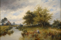594Rasenberger, Alfred 1895 Düsseldorf - 1949 Düsseldorf Wintertag am Niederrhein. Signiert. Öl/Lwd., 60 x 80 cm 200 EUR |