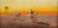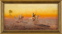 572Percy, F 19. Jhdt. Zwei Gemälde. Arabische Patrouille. Karawane. Signiert. Öl/Lwd., je 32 x 64 cm 400 EUR |