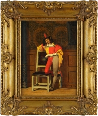 559Undeutlich signiert Datiert 1879 Zwei Gemälde. Palastwächter. Harlekin. Öl/Holz, je 33 x 25 cm 1200 EUR |