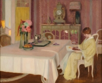 596Rau, Emil 1858 Dresden - 1937 München Ein hübsches Dirndl. Signiert. Öl/Lwd./Malk., 45 x 36 cm 300 EUR |