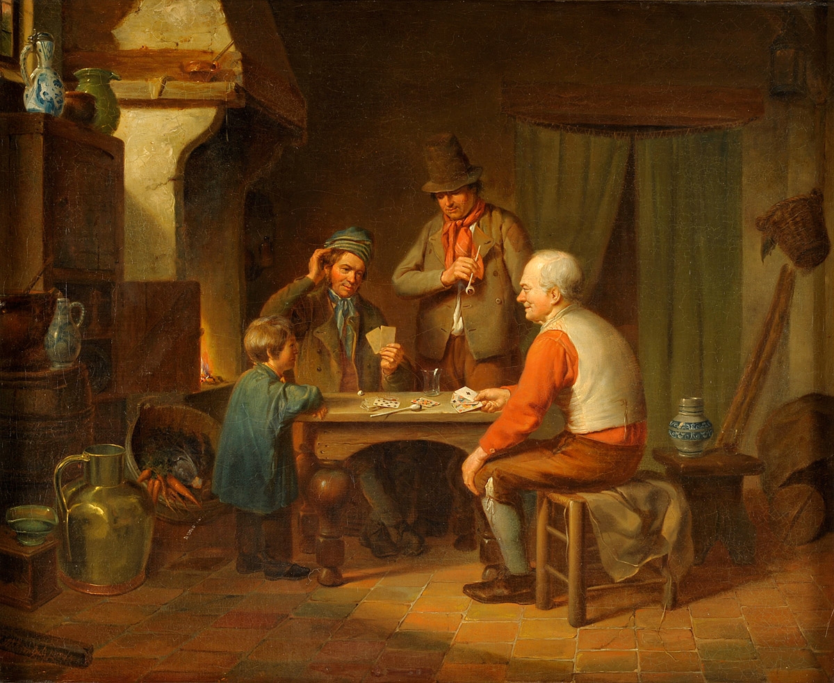 Akkersdijk, Jacob 1815 Rotterdam - 1862 Rotterdam Das Gewinnerblatt. Signiert. Datiert 1844. Öl/Lwd./doubl., 47 x 58 cm