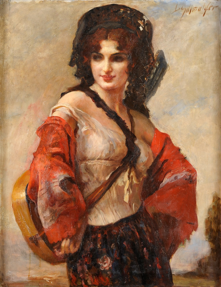 Schmutzler, Leopold 1864 Mies/Böhmen - 1941 Rom Eine hübsche Musikantin. Signiert. Öl/Lwd., 94 x 72 cm