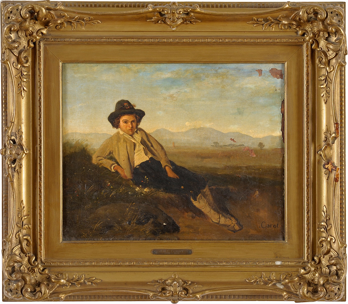 Unbekannter Meister 19. Jhdt. Hirtenjunge. Bez.: Corot. Öl/Lwd./doubl., 32,5 x 40 cm