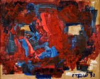 Thieler, Fred 1916 Königsberg - 1999 Berlin Informelle Komposition (Blau in Rot). Signiert. Datiert (19) 92. Öl und Mischt./Malk., 52 x 65 cm. Rückseite ebenfalls signiert und betitelt.