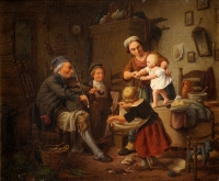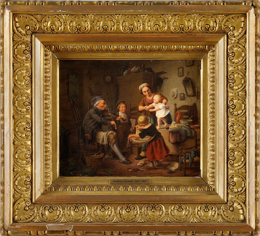 Wilhelmi, Heinrich 1816 Xanten - 1902 Düsseldorf Die ersten Schritte. Signiert. Öl/Lwd./doubl., 22 x 26 cm