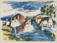 Vlaminck, Maurice de 1876 Paris - 1958 Rueil-la-Gadeliere Le Sausseron, 1921. Handsigniert. Farblithographie. 50 x 64 cm (sichtbare Größe).