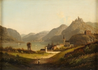 Deutscher Meister 19. Jhdt. Zwei Gemälde. Rheinlandschaften. Öl/Lwd. bzw. Öl/Lwd./Platte, je 48 x 65 cm