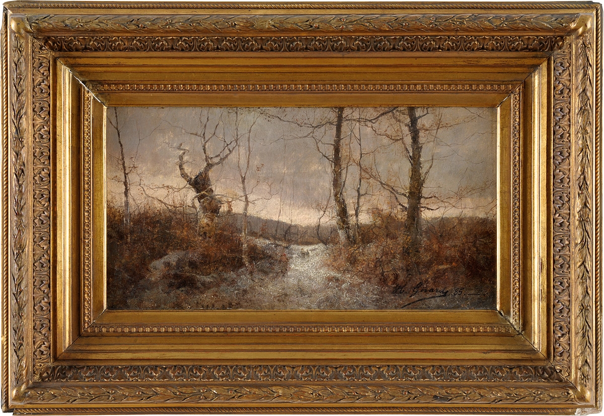598Gerard, Henry 1860 Toulouse - 1925 Martigues Zwei Gemälde. Sommerlandschaft. Winterlandschaft. Signiert. Datiert (18) 85. Öl/Lwd., je 22 x 41 cm 300 EUR |