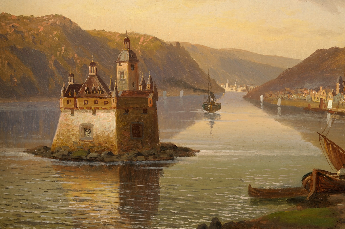 576Heyn, Heinrich Eduard 19. Jhdt. Ansicht von Kaub mit Blick auf Burg Pfalzgrafenstein. Signiert. Öl/Lwd., 33 x 54 cm 300 EUR |