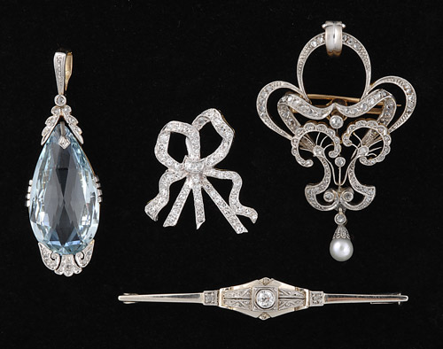1821Broschanhänger, Brosche und zwei AnhängerWeiß-/Gelbgold, Brillanten, Aquamarin und Perle 250 EUR |