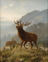 93Deiker, Carl Friedrich 1836 Wetzlar - 1892 DüsseldorfDer Platzhirsch. Signiert. Datiert 1868. Öl/Lwd., 42 x 34 cm 400 EUR |