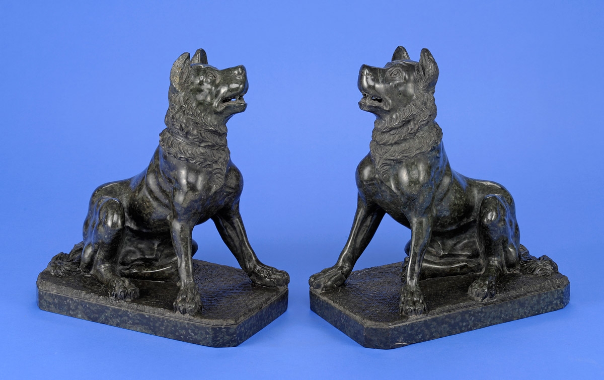 1672Zwei Kleinbronzen 19. Jhdt. Pallas Athene. Fischerjunge mit antiker Statuette. Athene signiert: Schievelkamp. H 29,5 cm bzw. 24,5 cm 120 EUR |