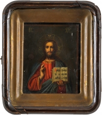 1653Triptychon (Klosterarbeit) mit Reliquien Süddeutsch 18. Jhdt. Holz geschnitzt. Fein gemalte Muttergottes mit Kind. H 26 cm, B 26 cm (geöffnet). 100 EUR |