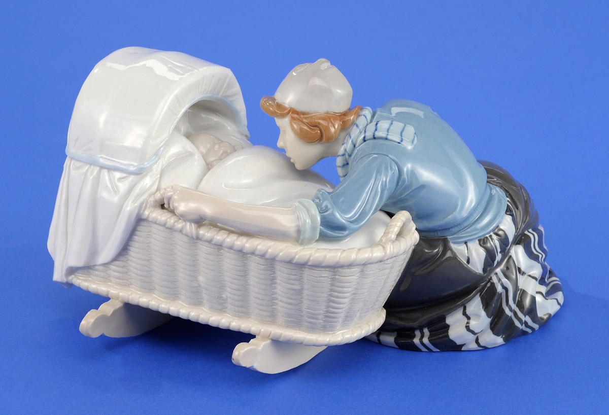 1586Holländerin an der Wiege Meissen um 1910 Naturalistisch staffiert. Nach einem Entwurf von Philipp Lange. Schwertermarke. BZ 11 u. 69. Min. rest. H 13 cm 600 EUR |