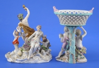 1592Meissen-Gruppe und Tafelaufsatz 19.Jhdt. Min. best. Bacchantengruppe II. Wahl. Schwertermarke. H 28,5 cm bzw. 28 cm 400 EUR |