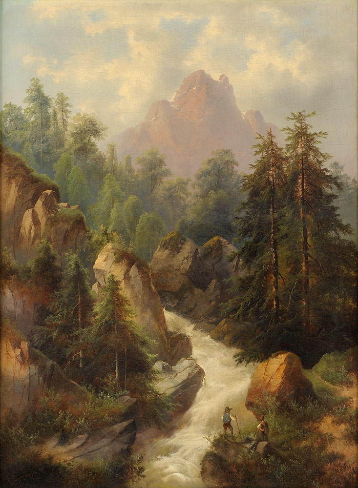 219Sparmann, Carl Christian 1805 Hintermauer - 1864 Hintermauer Wildbach im Gebirge. Signiert. Datiert (18) 49. Öl/Lwd./doubl., 100 x 74 cm 400 EUR |