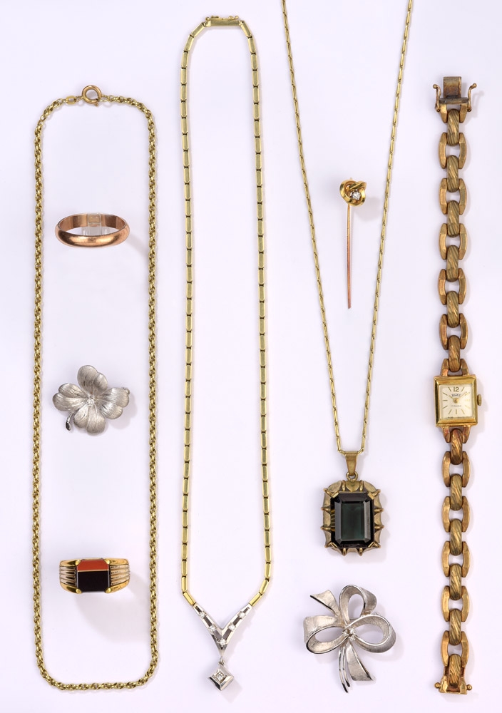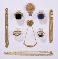 1335Konvolut Acht TeilePerlenketten, drei Paar Ohrringe, Gelbgold und Silber, 585-Gelbgoldring. 100 EUR |
