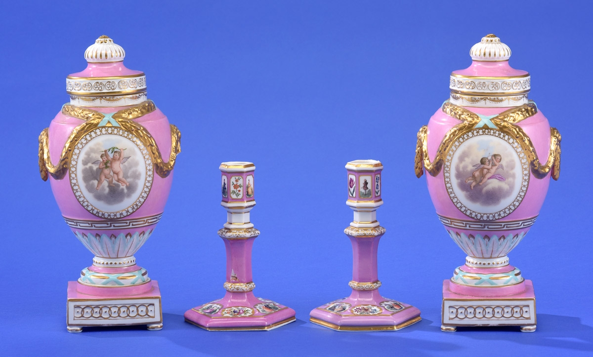 2117Ein Paar KPM-Deckelvasen und Kerzenhalter 200 EUR |