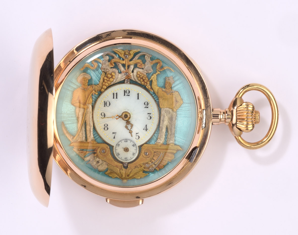 1604Taschenuhr mit Viertelrepetition und Figurenautomat Um 1900 300 EUR |