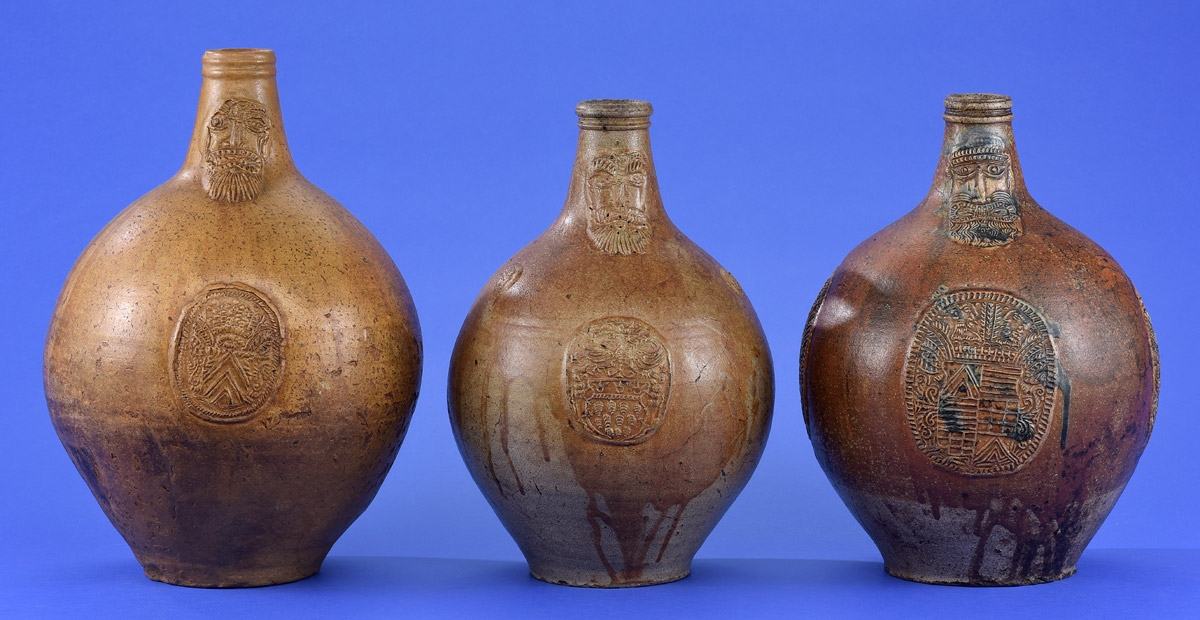 2084Drei Bartmannkrüge mit Auflagen Frechen 17. Jhdt. 250 EUR |