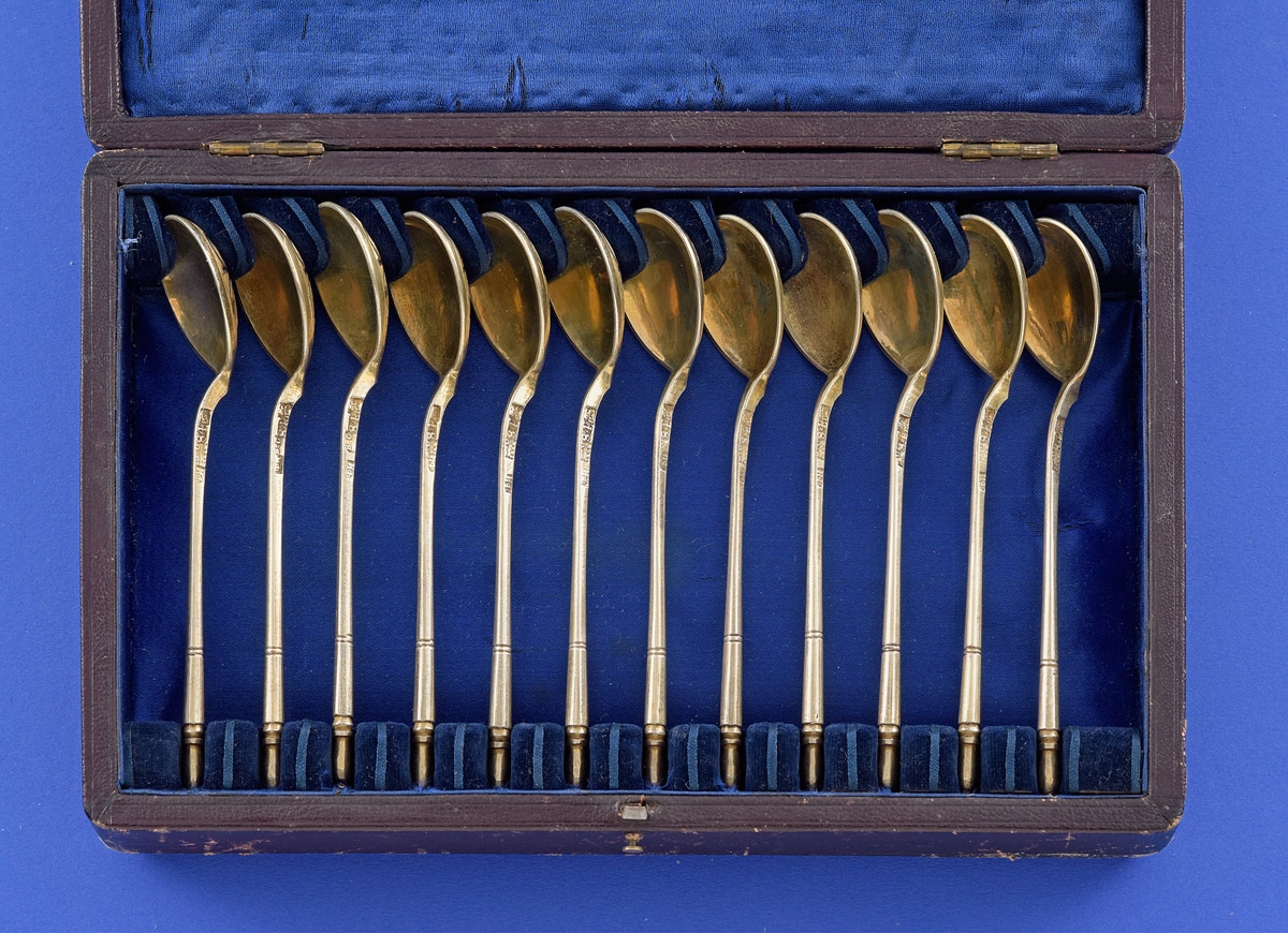529Satz von 12 Niello-Teelöffel im Etui von Fjodor Ivanov Moskau 1863 150 EUR |