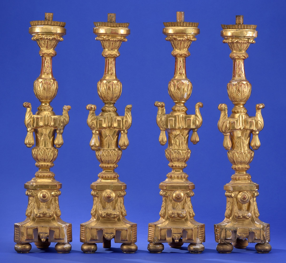 727Satz von vier Altarleuchtern und ein Paar Altarleuchter Ende 18. Jhdt. 200 EUR |