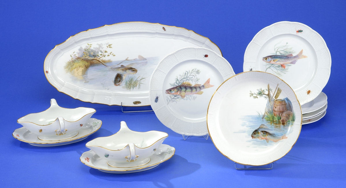 546Meissen-Service mit Flussfischdekor, 19. Jhdt. 10 Teile 400 EUR |