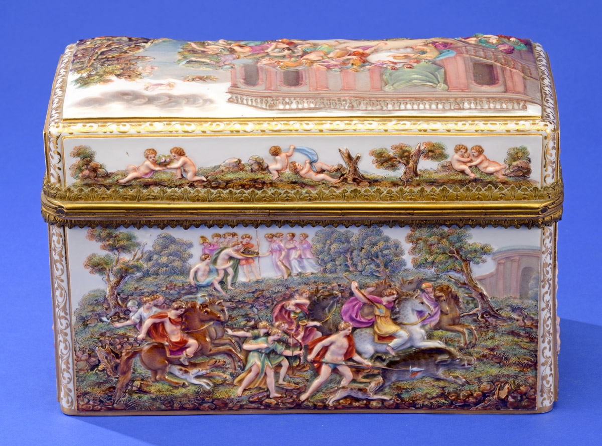 500Große Deckeldose mit vergoldeter Bronzemontierung Meissen, Ende 19. Jhdt. 200 EUR |