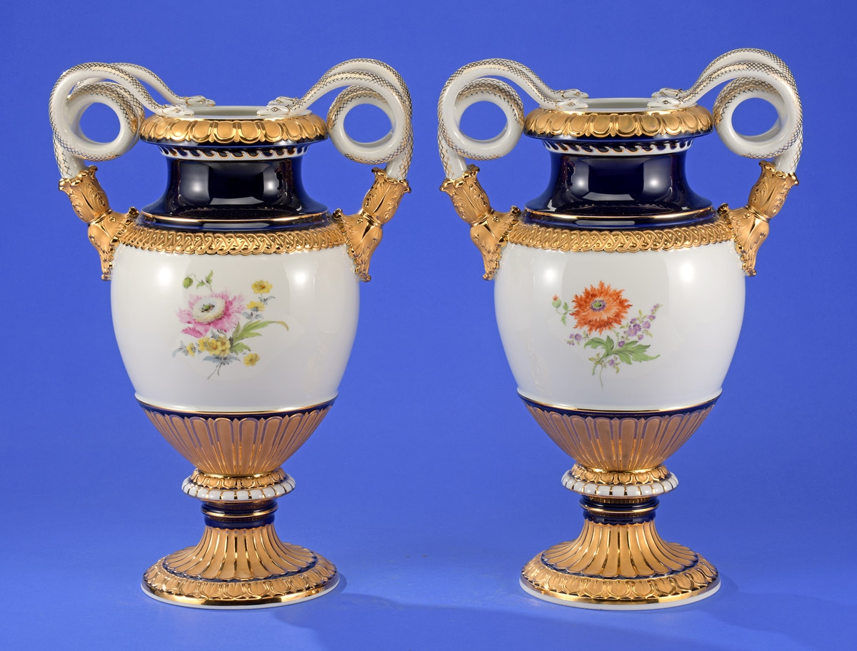 547Ein Paar Schlangenhenkelvasen Meissen 20. Jhdt. 1200 EUR |