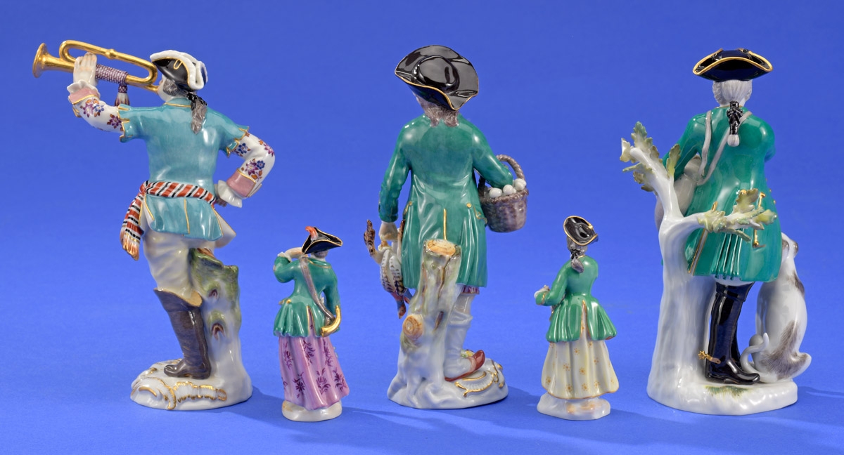 533Meissen-Jäger, Nymphenburg-Dame und zwei Hutschenreuther-Figuren 150 EUR |