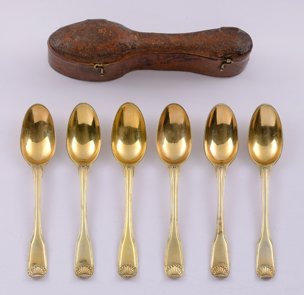 438Satz von sechs Löffeln im Etui Frankreich, Anfang 19. Jhdt. 100 EUR |