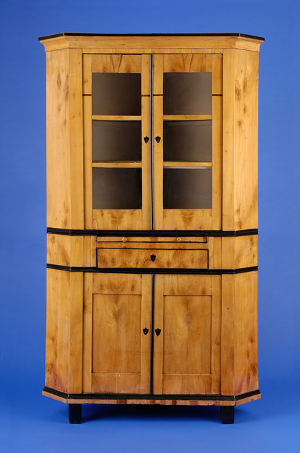 1044Aufsatzschrank Niederlande um 1800Dreischübiges Kommodenteil auf kannelierten Füßen. Passiger, doppeltüriger Aufsatz mit appliziertem Schnitzwerk. Ergz. H 225 cm, B 160 cm, T 58 cm 300 EUR |