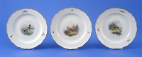 820Satz von sechs Meissen-Teller Ende 19. Jhdt. Fein gemalte Jagdmotive und Insekten. Goldrand. Schwertermarke. Beizeichen. Ø 25 cm 400 EUR |