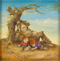 615Undeutlich signiert Polen 20. Jhdt. Wypoczynek Gnoma. Rückseite betitelt. Öl/Lwd., 46,5 x 46,5 cm 50 EUR |