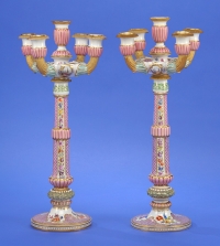 1825Ein Paar Kerzenhalter Meissen 19. Jhdt. Einflammig. Bunt staffiert und vergoldet. Schwertermarke. H 32 cm 150 EUR |