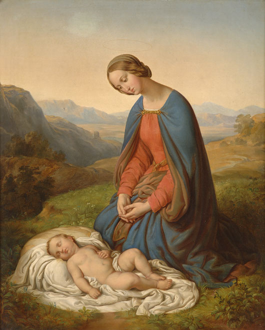 70Deutscher Meister Erste Hälfte 19. Jhdt.Weite Landschaft mit Madonna und Kind. Öl/Lwd./doubl., 71 x 58 cm 600 EUR |
