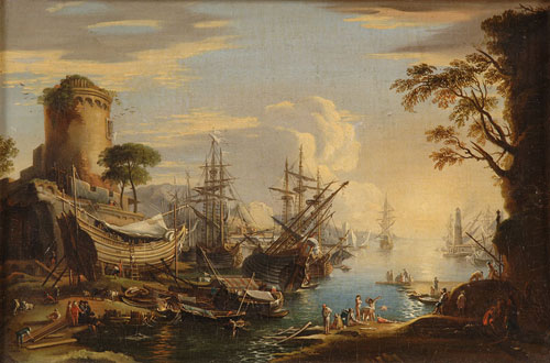 98Flämischer Meister 18./19. Jhdt.Hafenansicht mit regem Treiben. Öl/Lwd./doubl., 26 x 39 cm 1200 EUR |