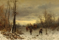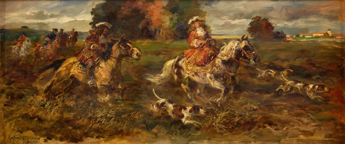 268Hoffmann, Anton 1863 Bayreuth - 1938 München Ausritt zur Jagd. Signiert. Öl/Lwd., 30 x 62 cm 600 EUR |