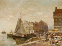 256Hermanns, Heinrich 1862 Düsseldorf - 1942 ebenda Blumenmarkt in Dordrecht. Signiert. Öl/Lwd., 64 x 92 cm 600 EUR |
