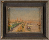 67Hermanns, Heinrich 1862 Düsseldorf - 1942 Düsseldorf Blick auf Mainz. Signiert. Rückseite betitelt. Öl/Malk., 25 x 34 cm 50 EUR |