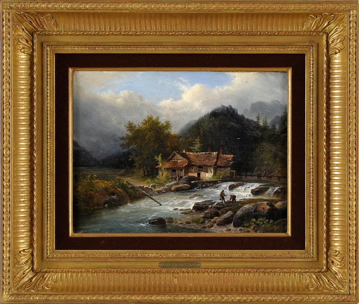 628Watelet, Louis Etienne 1780 Paris - 1866 Paris Wassermühle am Wildbach. Restsignatur. Öl/Lwd., 25 x 33 cm 200 EUR |