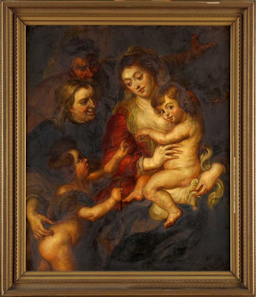 614Rubens, Peter Paul 1577 Siegen - 1640 Antwerpen (nach) Die Heilige Familie mit Johannesknabe. Öl/Lwd., 118 x 110 cm 200 EUR |