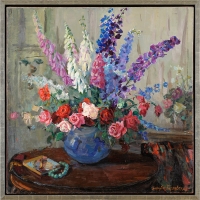 648Teuber, Hermann 1894 Dresden - 1985 München Blumenstilleben. Signiert. Datiert 1935. Aquarell. Verso: Blumenstilleben. 44 x 36 cm 200 EUR |