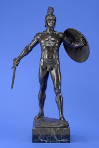 1332Kowalczewski, Karl 1878 Schwarzenau - 1926 Berlin Griechischer Krieger der Antike. Bronze. Signiert. Marmorsockel. H 80 cm 600 EUR |