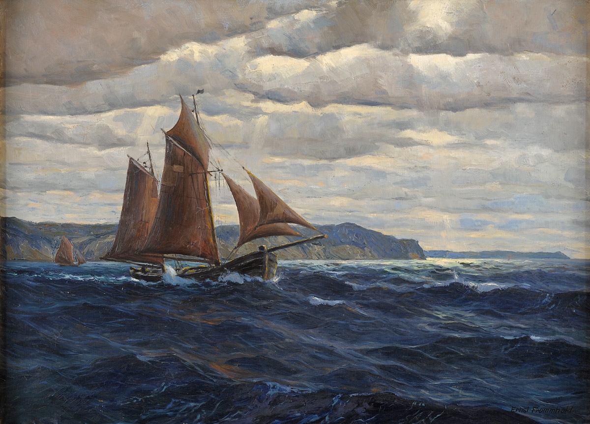 464Frommhold, Ernst 1879 Leipzig - 1955 Leipzig Fischerboote vor Rügen. Signiert. Öl/Lwd., 62 x 88 cm 150 EUR |