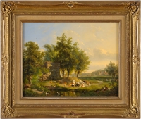 492Wydoogen, Nicolas Martinus 1824 Koog an de Zaan - 1898 Kopenhagen Zwei Gemälde. Winterlandschaft. Sommerlandschaft. Signiert. Öl/Holz, je 23 x 27 cm 600 EUR |