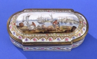 850Emaille-Dose, 18. Jhdt. und Porzellantabatiere mit Kauffahrteiszene 100 EUR |