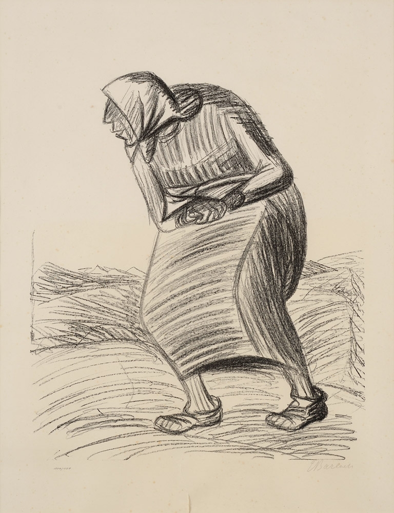 Barlach, Ernst 1870 Wedel/Holstein - 1938 Rostock Liebe in Leid, 1924. Signiert. Lithographie. Exemplar 56/60. 49 x 37,5 cm (sichtbare Größe). Provenienz: Geschenk Ernst Barlachs an Frau Dr. Therese von Bossiazky aus Güstrow, Ende der 40er Jahre.