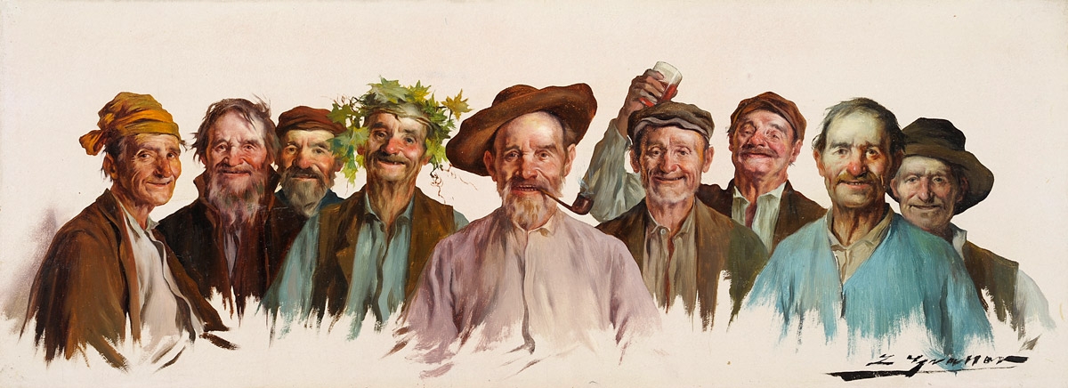 Graner Arrufi, Luis 1863 Barcelona - 1929 ebenda Charakterköpfe. Signiert. Öl/Holz, 18 x 46 cm