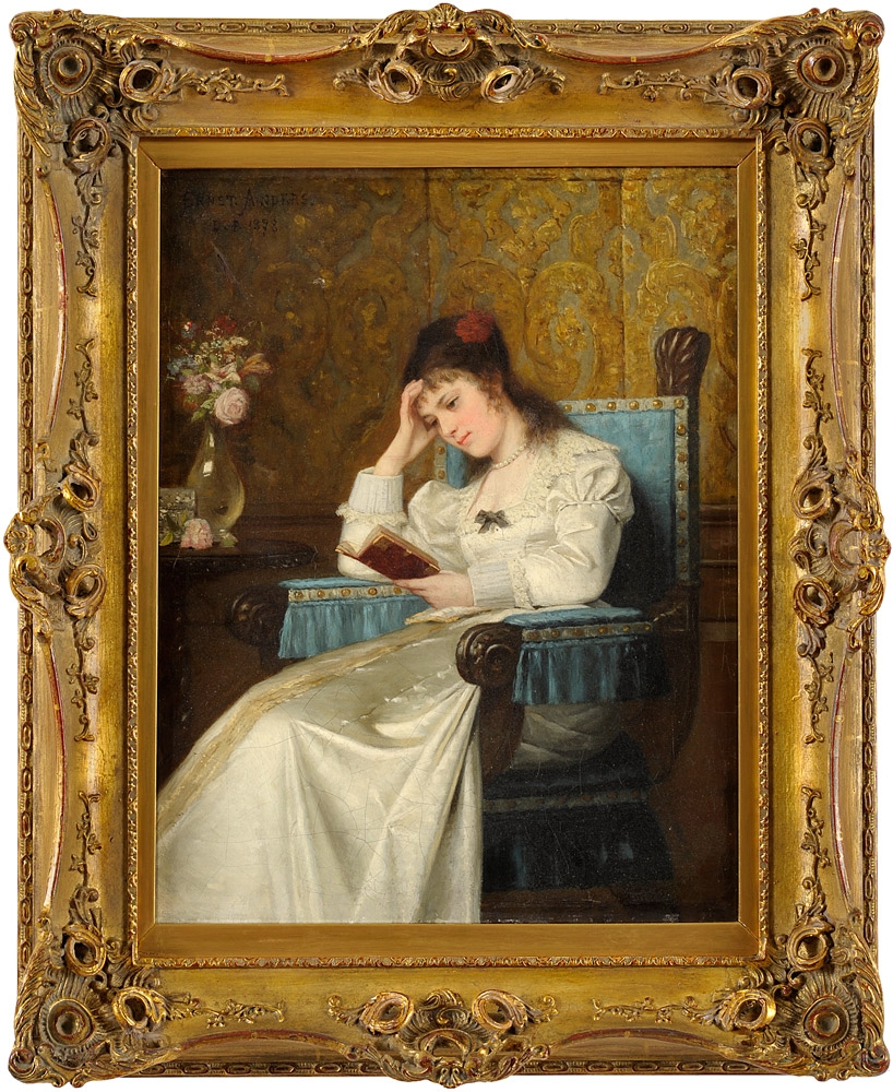 Anders, Ernst 1845 Magdeburg - 1911 Düsseldorf Ein stiller Moment. Signiert. Datiert 1878. Öl/Lwd./doubl., 40 x 30 cm